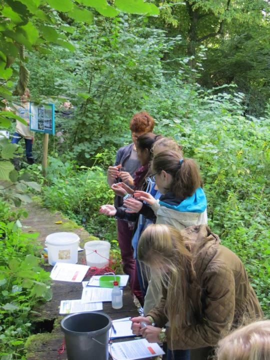 In het kader van de lessen “ Ecologie “ binnen het studievak Biologie van de 4de jaars, verrichten we met de leerlingen een onderzoek naar de kwaliteit van het water in “het oude zwembad” in het bos achter het schoolterrein en in de naburige Molenbeek. Hierbij bepalen de leerlingen zowel een aantal chemische parameters ( NO2-, NO3- , PO43-, NH4+, O2, hardheid) als de Biotische Index.