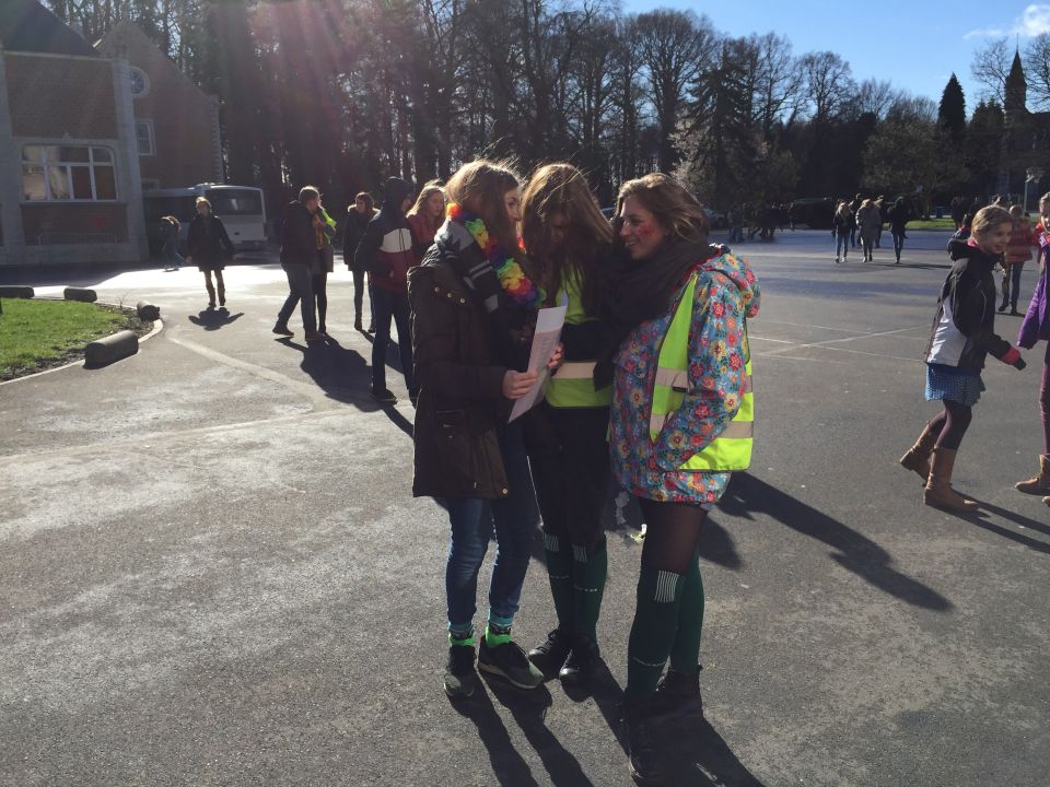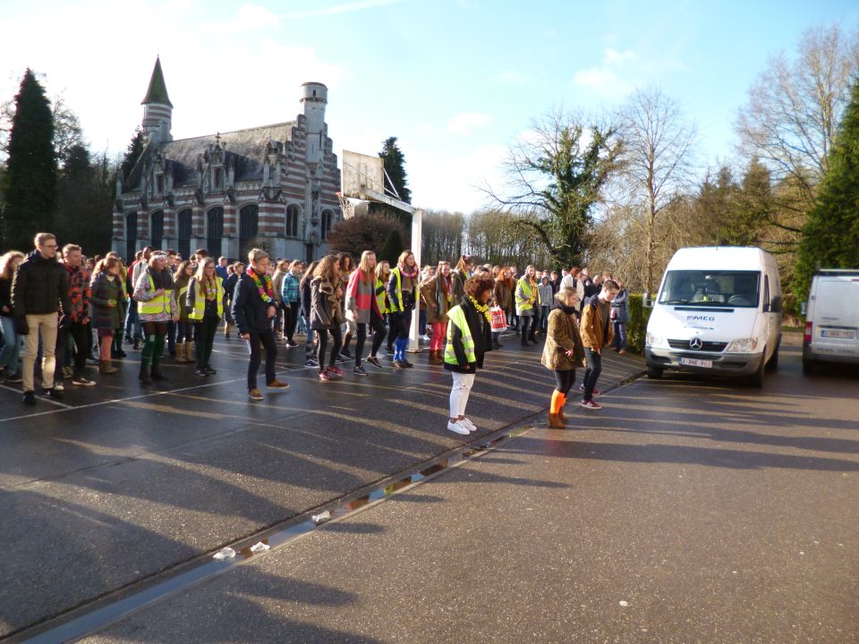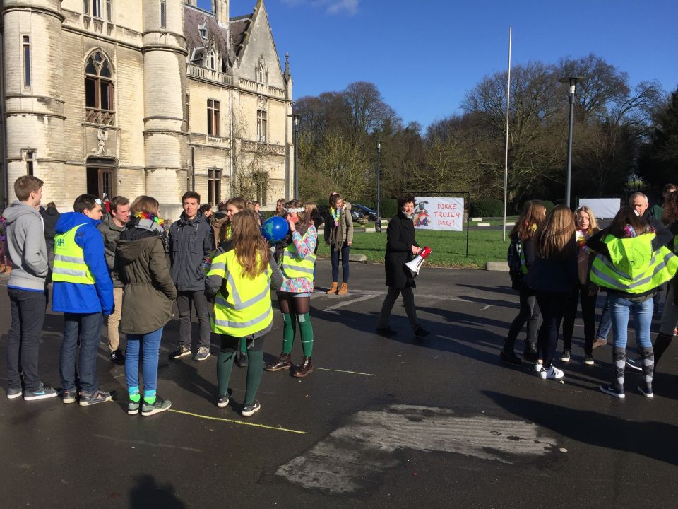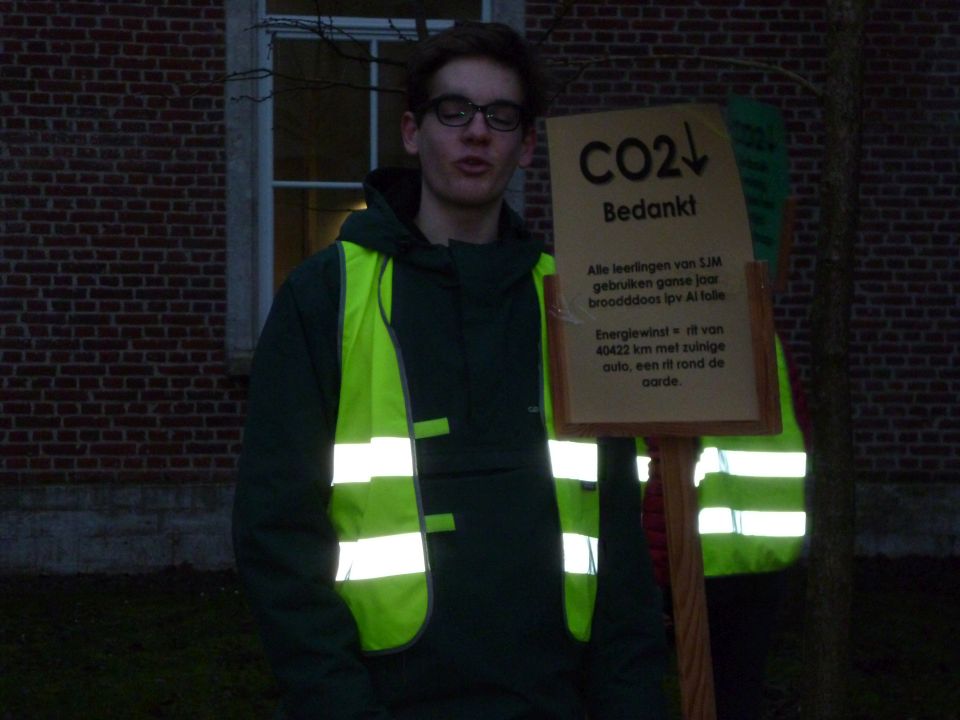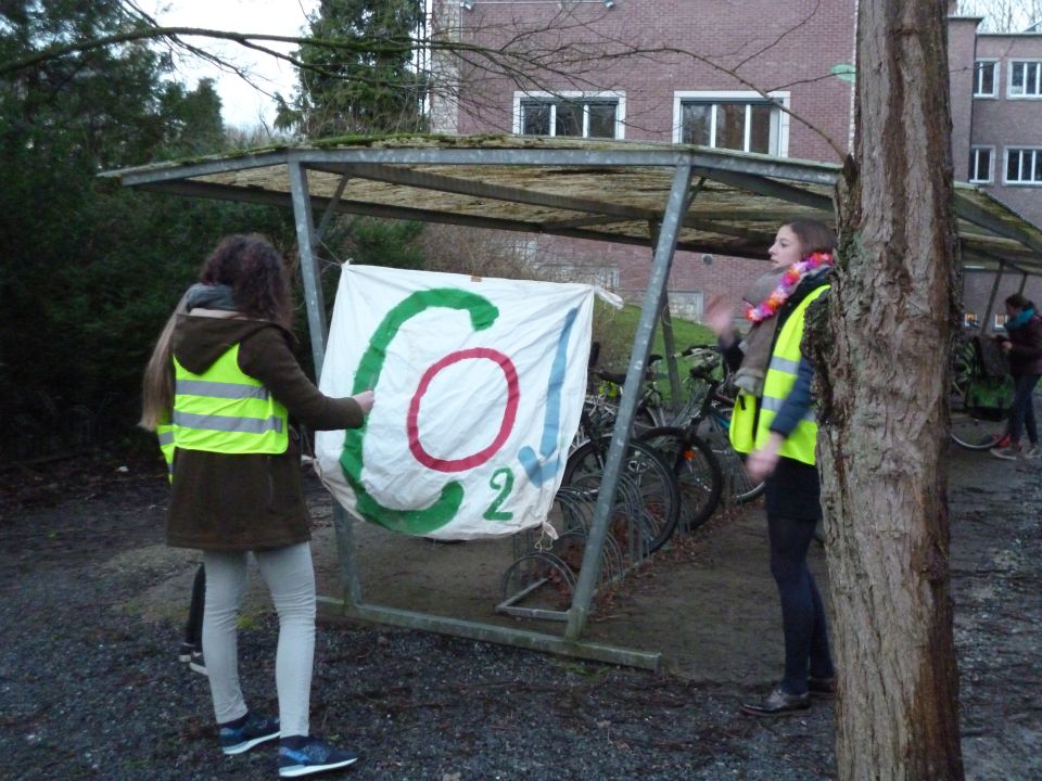 En dat betekende dat de thermostaat 3 graden lager ging en dat we leerlingen opriepen om zoveel mogelijk met openbaar vervoer of met de fiets naar school te komen. Fietsers werden die dag dan ook extra beloond met leuke geschenkjes.