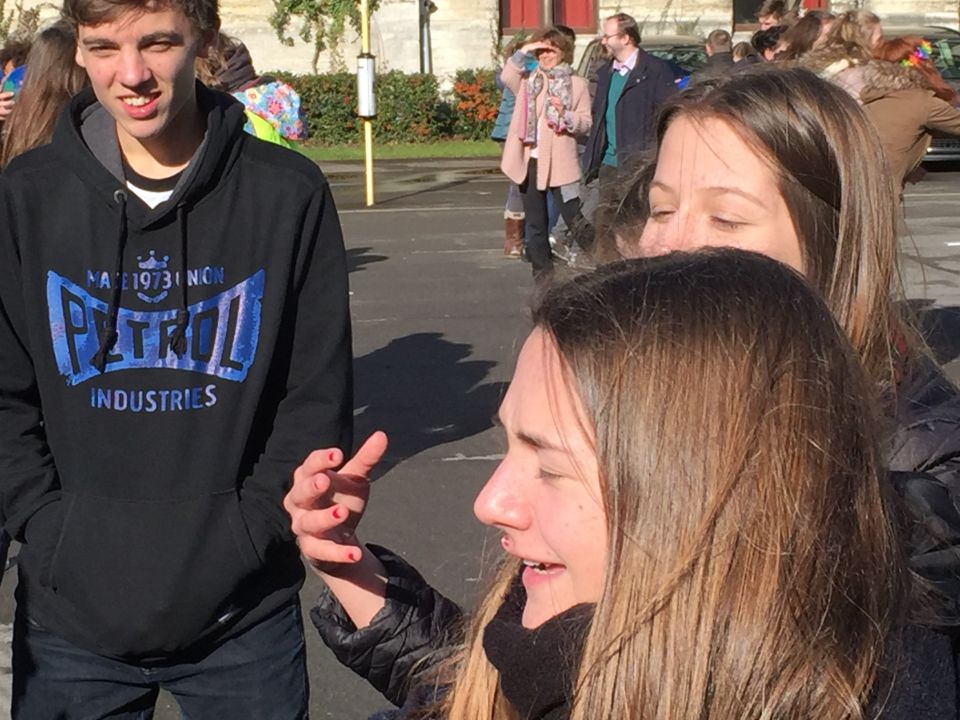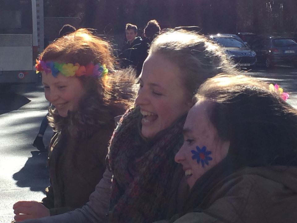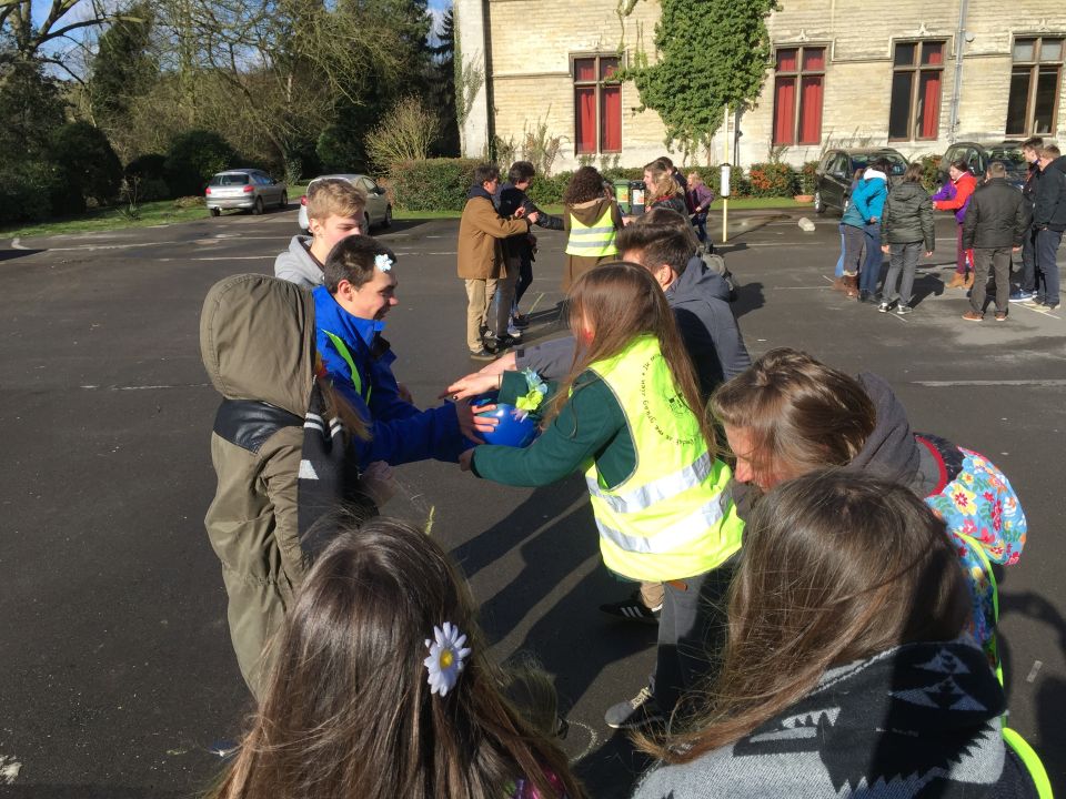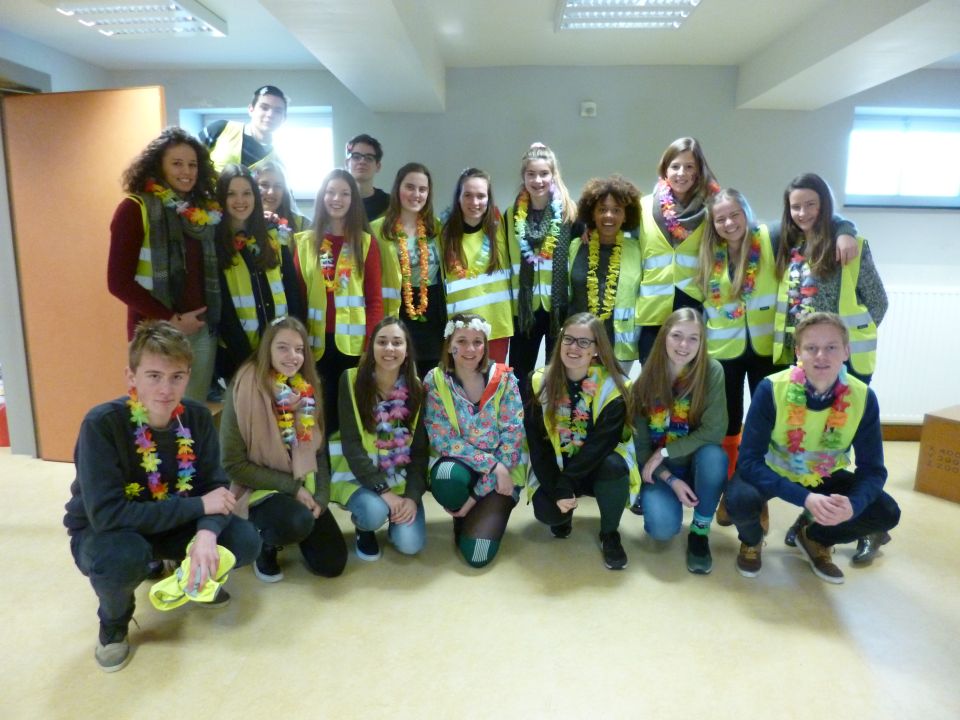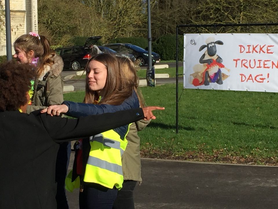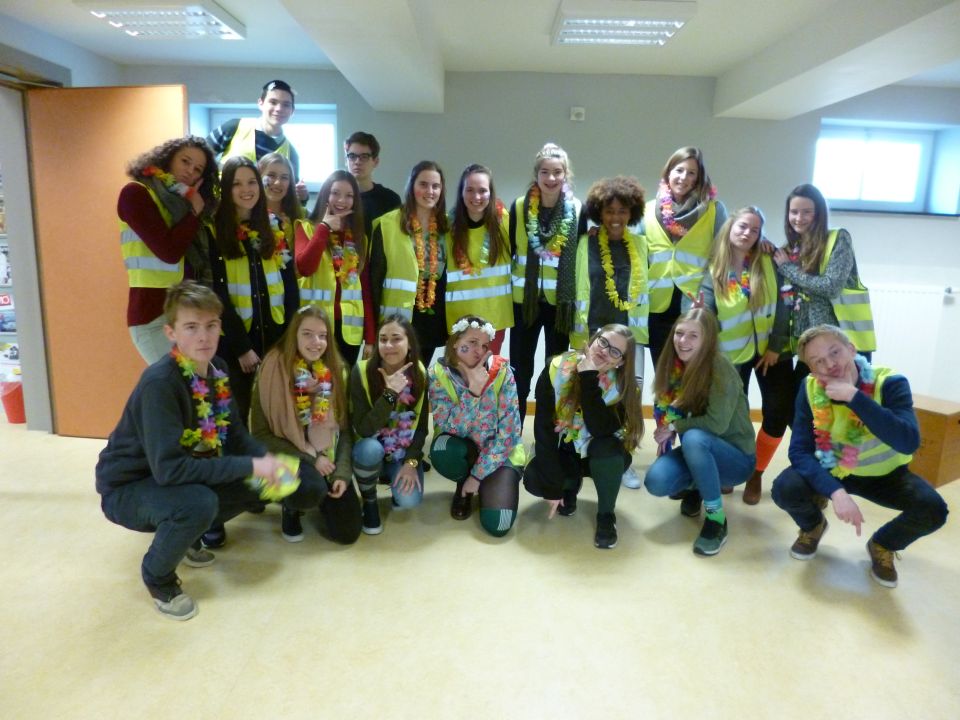 En dat betekende dat de thermostaat 3 graden lager ging en dat we leerlingen opriepen om zoveel mogelijk met openbaar vervoer of met de fiets naar school te komen. Fietsers werden die dag dan ook extra beloond met leuke geschenkjes.
