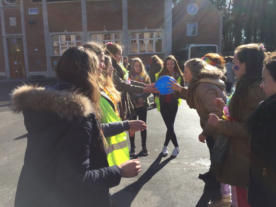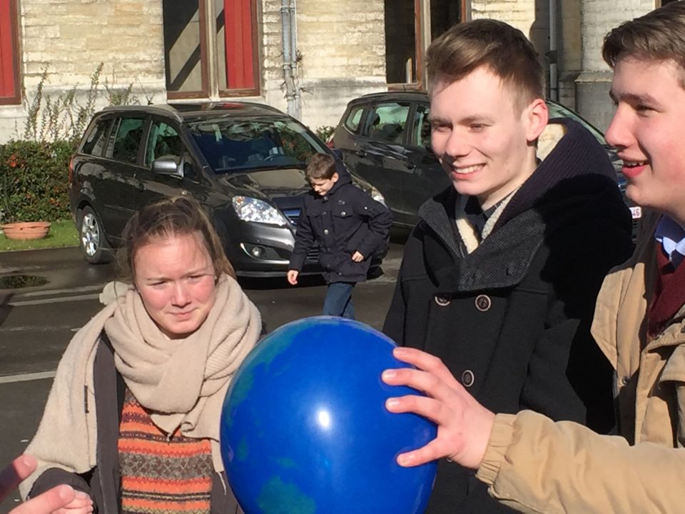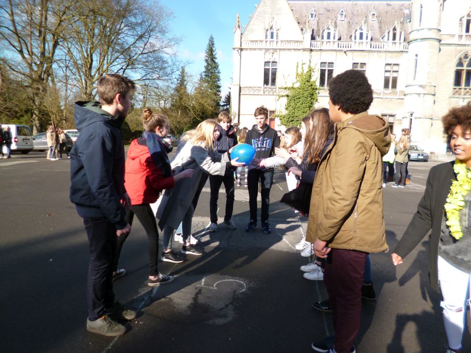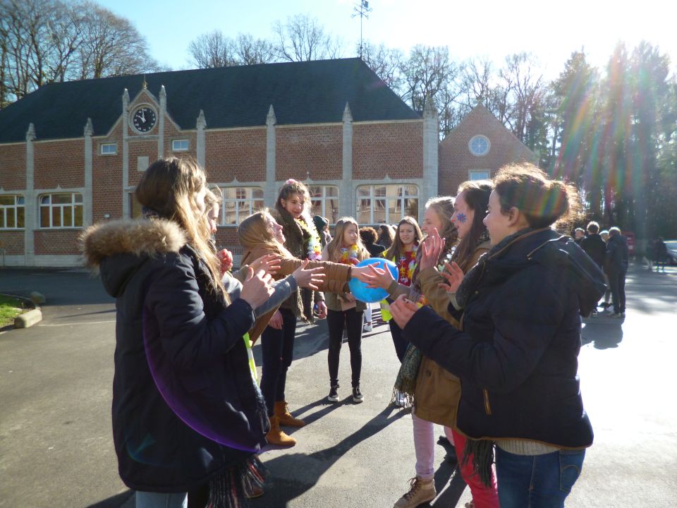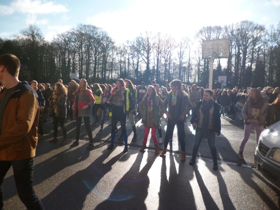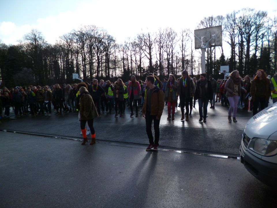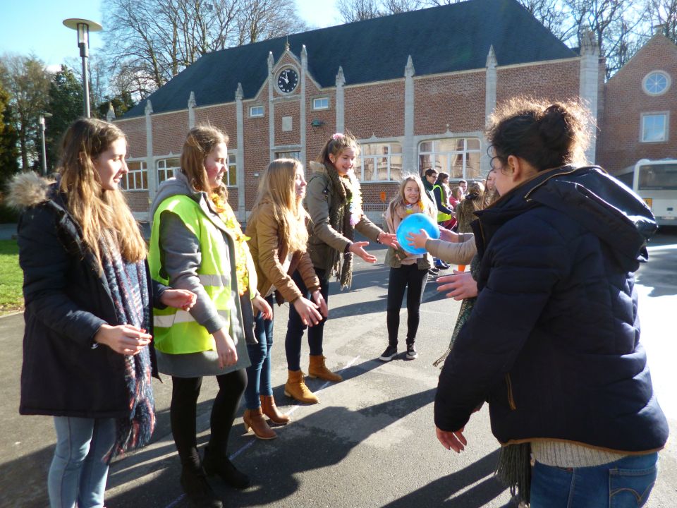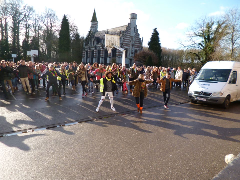 Tijdens het eerste lesuur namen alle klassen deel aan de grote klimaatquiz. En al onze eerstejaarsleerlingen kregen bladwijzers met tips voor minder CO2-productie. Om het warm te houden was er de eerste speeltijd een opwarmdans en ’s middags speelden we het spel ’We laten de wereld niet vallen’.