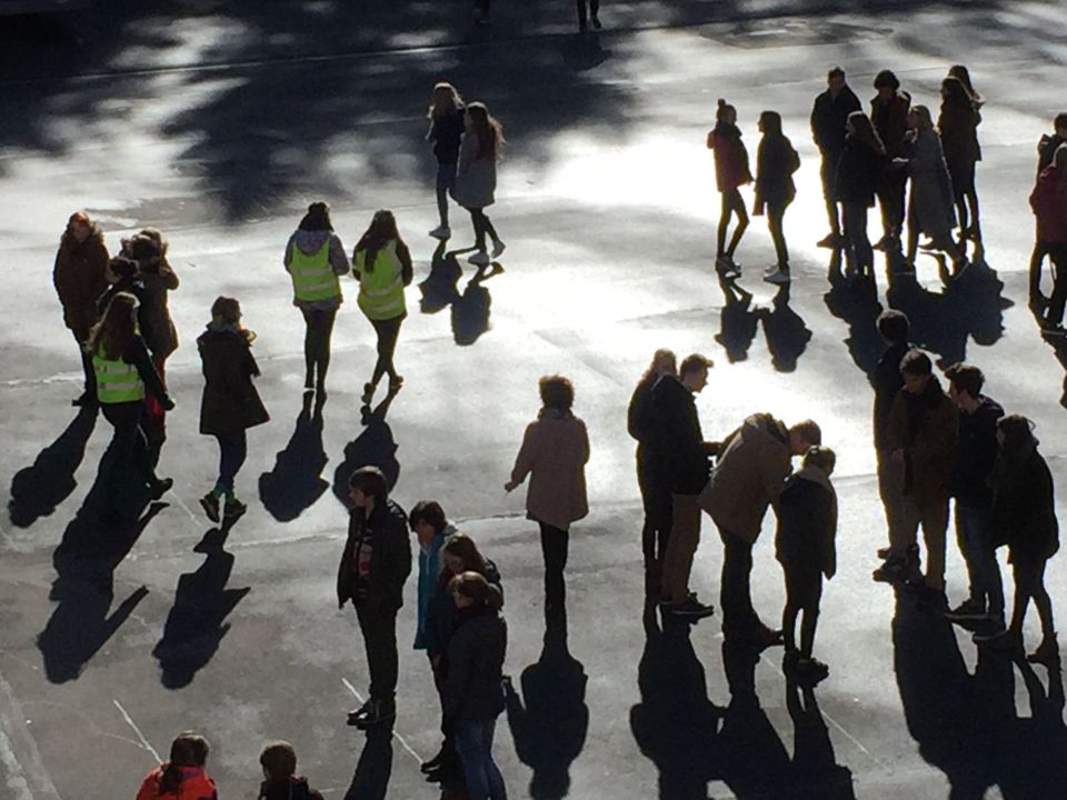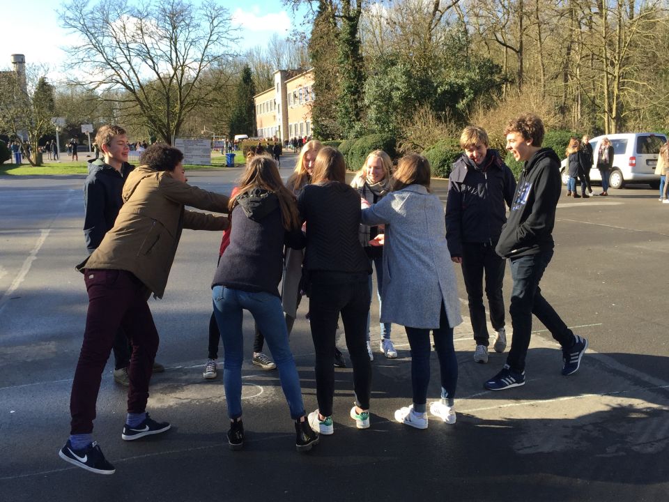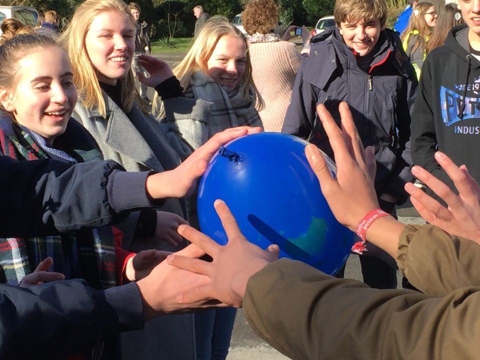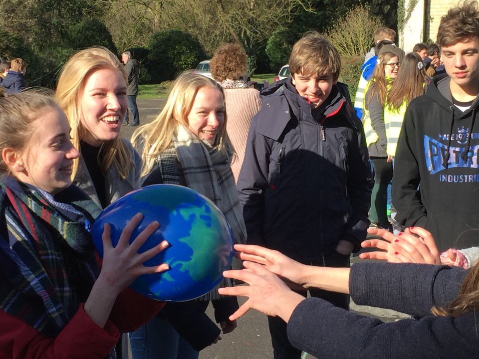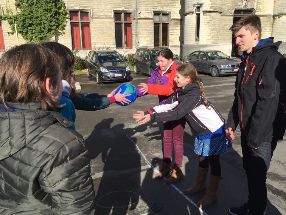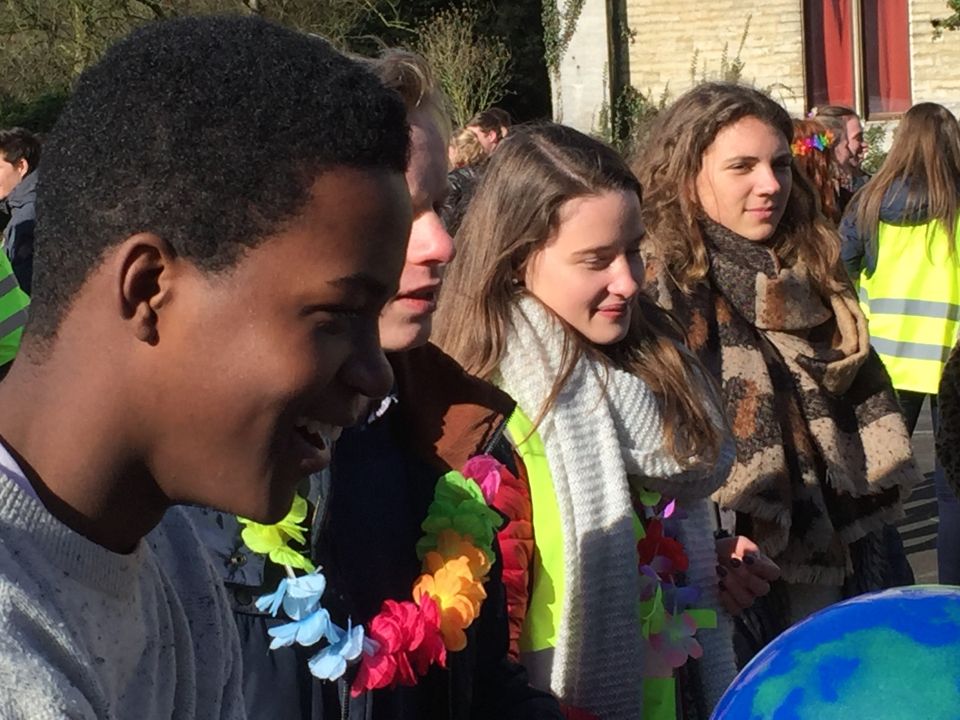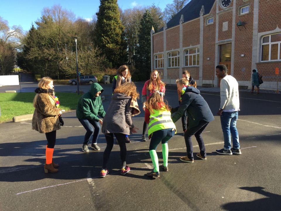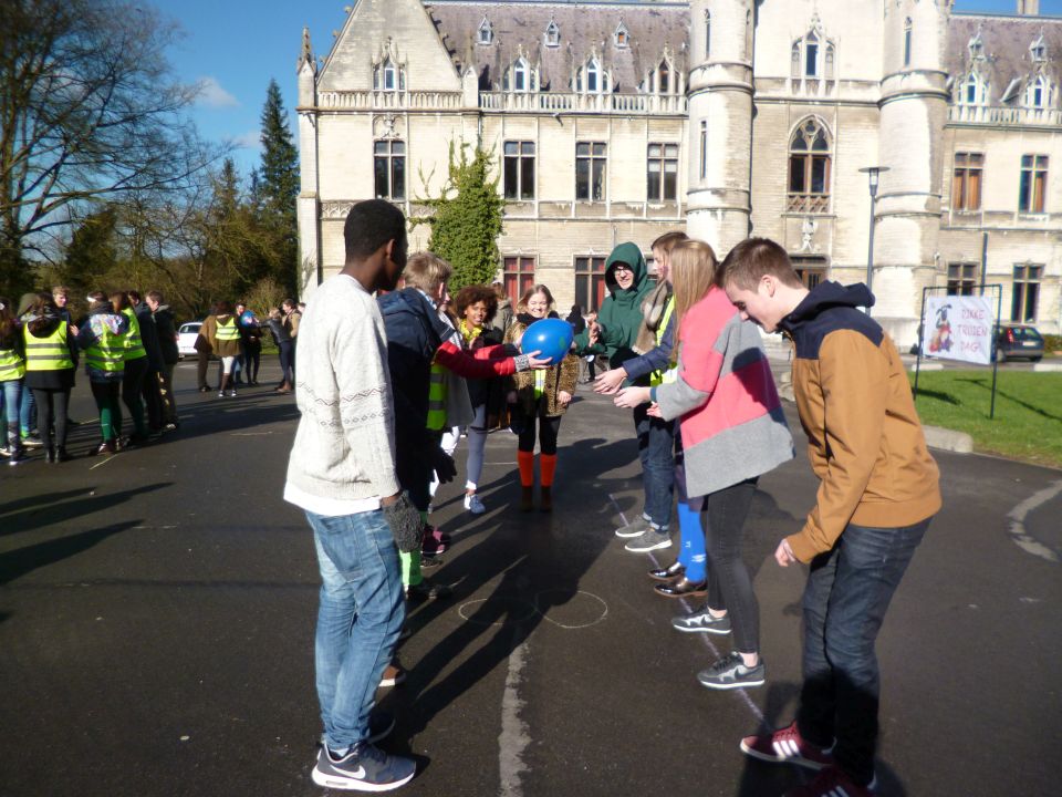 Tijdens het eerste lesuur namen alle klassen deel aan de grote klimaatquiz. En al onze eerstejaarsleerlingen kregen bladwijzers met tips voor minder CO2-productie. Om het warm te houden was er de eerste speeltijd een opwarmdans en ’s middags speelden we het spel ’We laten de wereld niet vallen’.