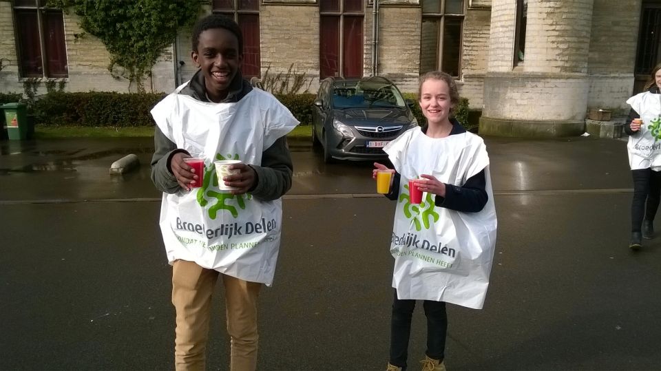De leerlingen konden tijdens het middageten genieten van lekkere chocomelk en (h)eerlijk fruitsapjes en vanaf half vier konden wachtende chauffeurs zich warmen aan een kop Fairtradekoffie in ons eigenste Koffiestopcafé. Of ze konden zich ook laten bedienen door de leerlingen van 2LATC/2MWEC. Hun enthousiasme kon het ingezamelde bedrag laten oplopen tot 550,13 EUR! Een welgemeende 'dankuwel' aan iedereen!