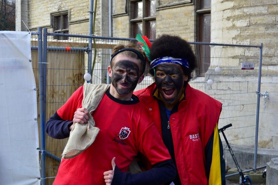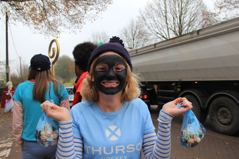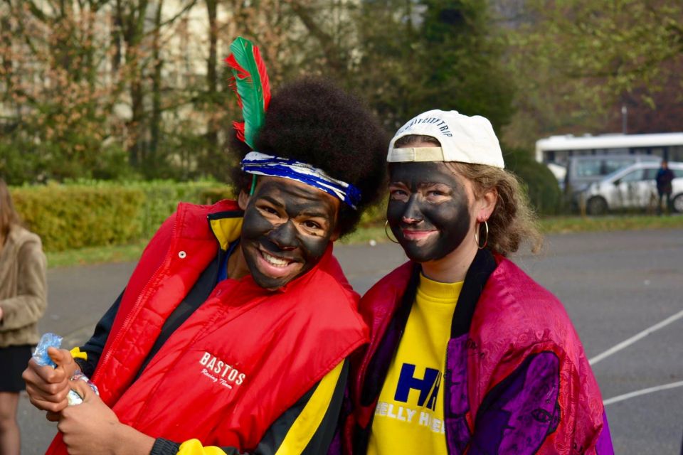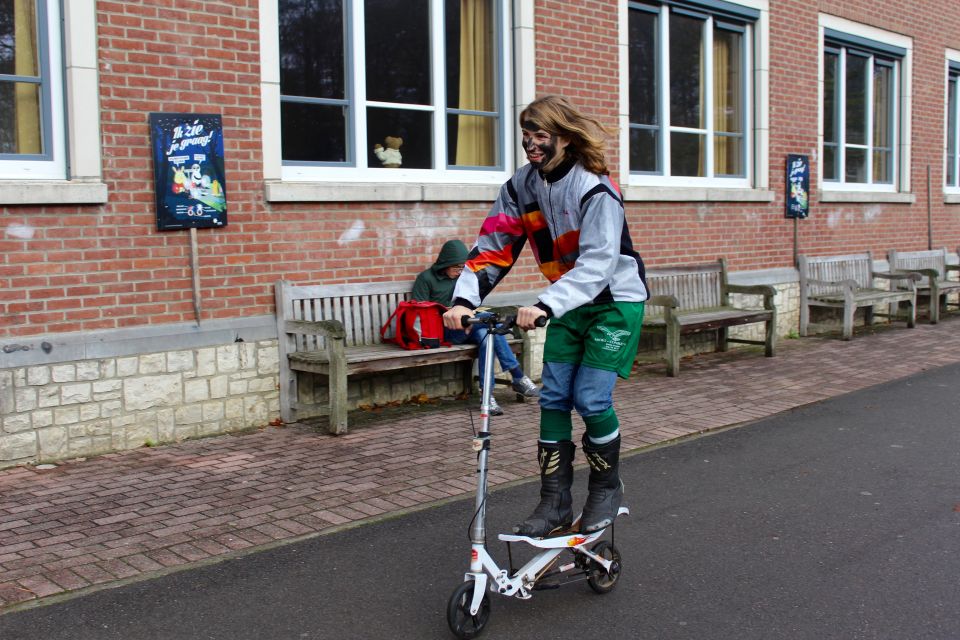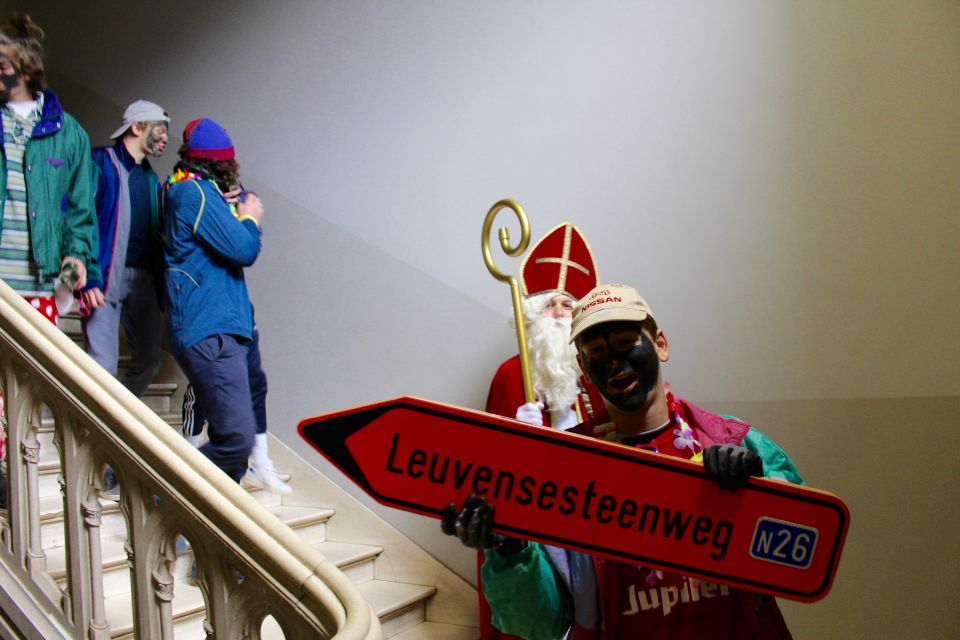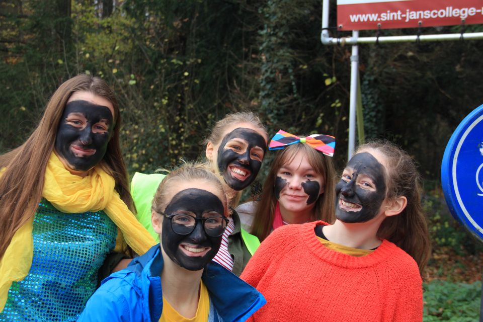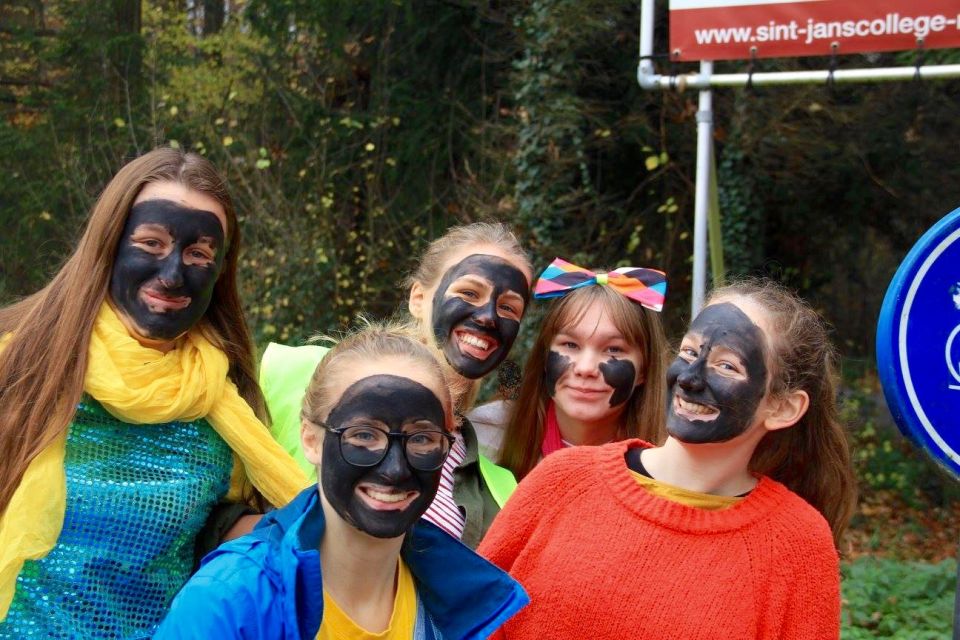 Dit jaar had de Sint een probleem. Hij moest natuurlijk op twee plaatsen tegelijk zijn nu ook de kleuterschool De Boskabouter op ons schoolterrein onderdak gevonden heeft. Maar niet getreurd. Sint genoeg voor iedereen! En nu eens niet per helicopter, kraanwagen, kar of bromfiets. De goedheilige man kwam dit jaar gewoon opnieuw te paard toe aan het Sint-Janscollege, vergezeld van al zijn ‘laatstejaarpieten’. En naar de Sint zelf beweerde had ‘Slecht weer vandaag’ in Spanje iets te lang in de zon gestaan, te oordelen aan zijn bruine kleur…