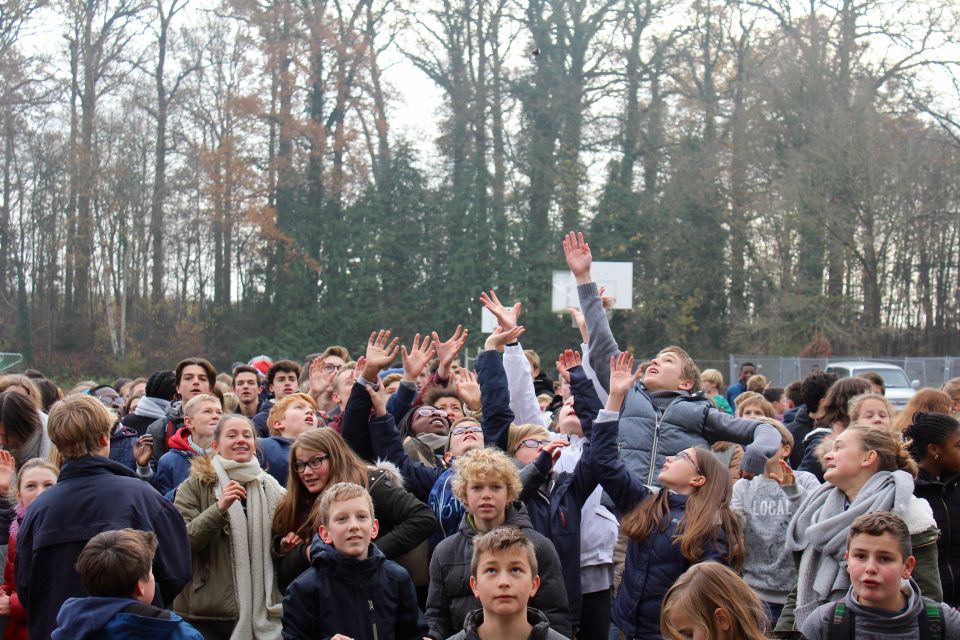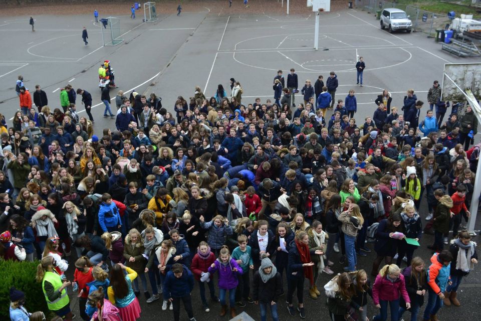 En zo hield de Sint opnieuw zijn jaarlijkse toespraak en haalde er noodgedwongen enkele stoute kindjes én zelfs leraars bij. Maar na het zingen van enkele Sinterklaasliedjes als boetedoening was alles weer vergeven en vergeten en mochten de Pieten met snoep beginnen smijten. Hoe het de Sint ondertussen in de kleuterklas verging, lees je dan wel weer elders. In elk geval proficiat aan onze laatstejaars voor een puike organisatie en een leuke middag. Tot volgend jaar Sint!