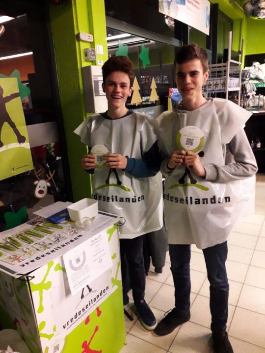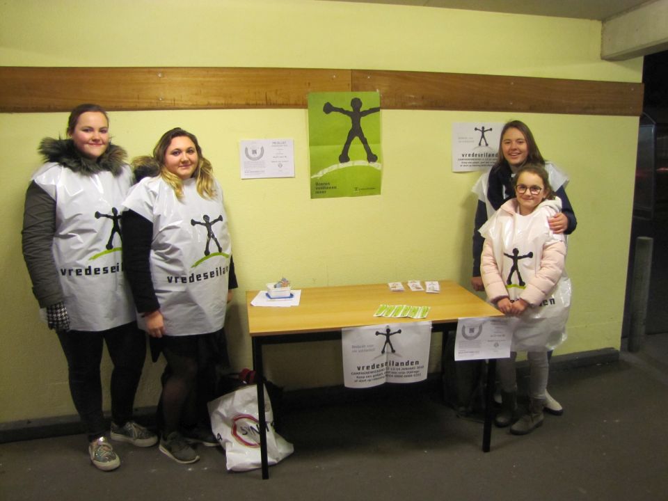 Ook dit jaar namen de leerlingen van de tweede en derde graad enthousiast deel aan de campagne van 12, 13 en 14 januari. De aftrap werd op school gegeven: tijdens de middagpauze van 11 januari konden de leerlingen een fair snoeppakketje of een Vredeseilandengadget kopen. Heel wat vrijwilligers hebben in het weekend in de warenhuizen van Tienen, Hoegaarden, Boutersem en Lovenjoel de gekende balpennen en sleutelhangers verkocht. De weergoden waren hen gelukkig gunstig gezind, want het zonnetje was ook van de partij.
